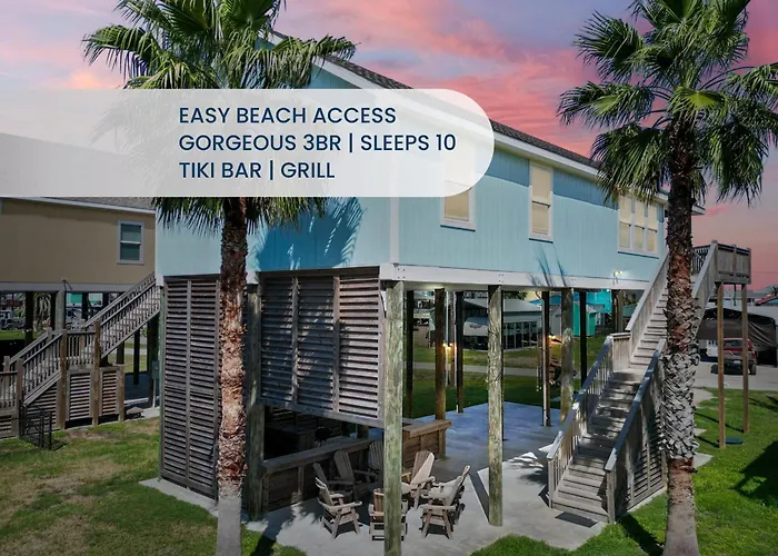 **3Br Beach Retreat - Tiki Bar, Ocean Deck, Pet-Friendly & Sleeps 10** invites you to experience coastal bliss like never before. Nestled in the heart of Crystal Beach, this charming escape blends comfort with seaside charm, ensuring an unforgettable getaway for families and friends. With ample space to accommodate up to ten guests, this beach retreat is perfect for larger groups looking to unwind in style.